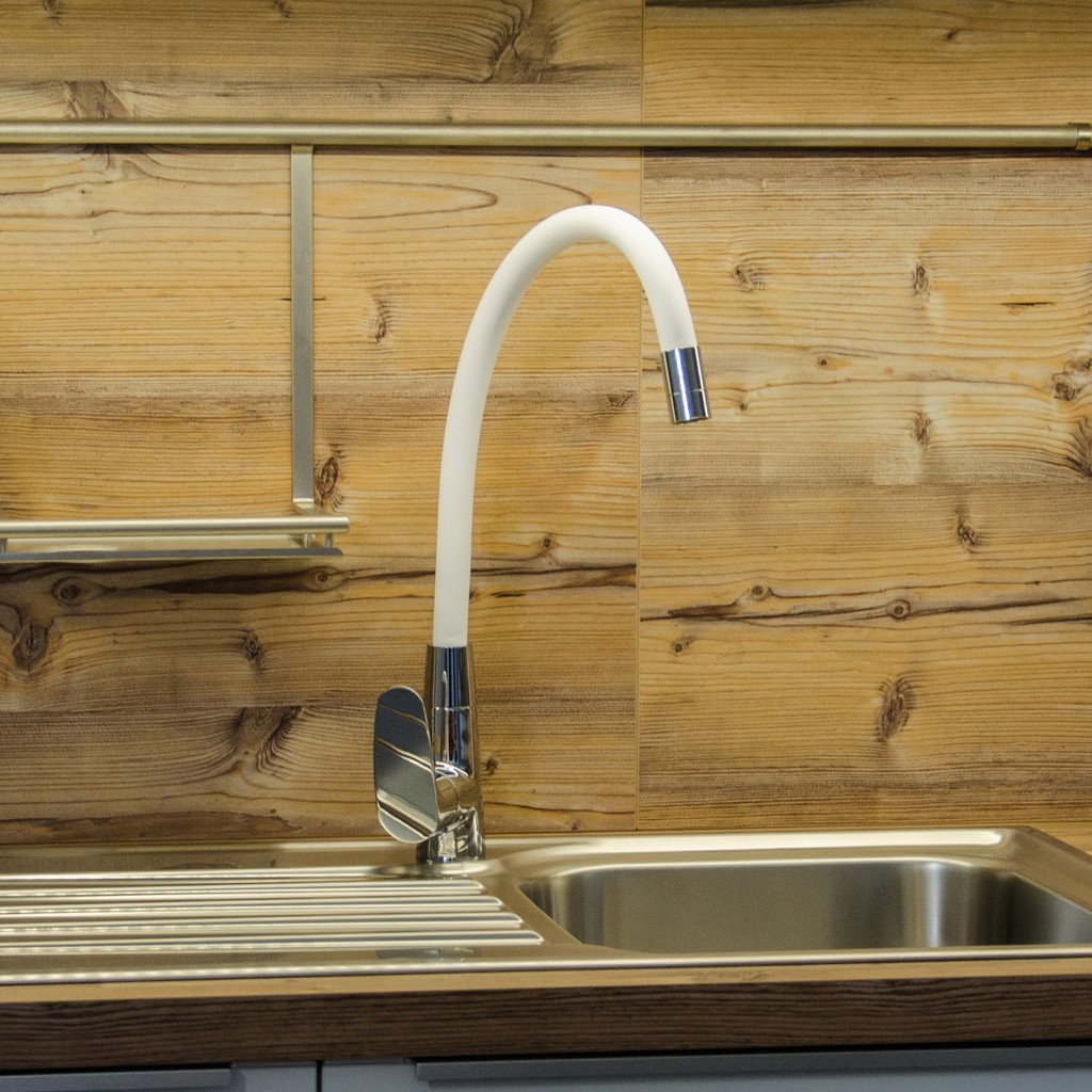 AMUR - Смеситель для мойки с гибким рычагом, хром/белый AM719.5/10B, RAV Slezák