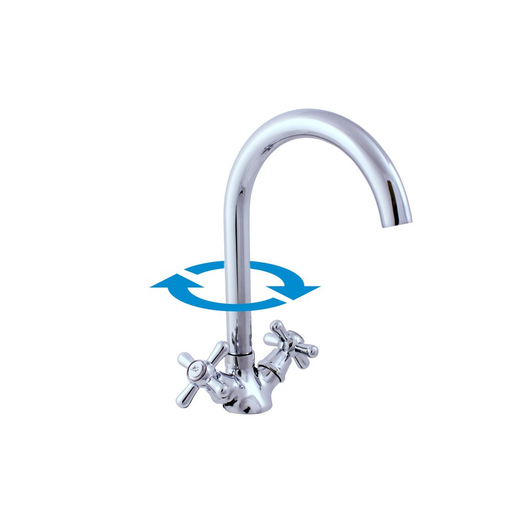 Отдельно стоящий смеситель для мойки с поворотным изливом.