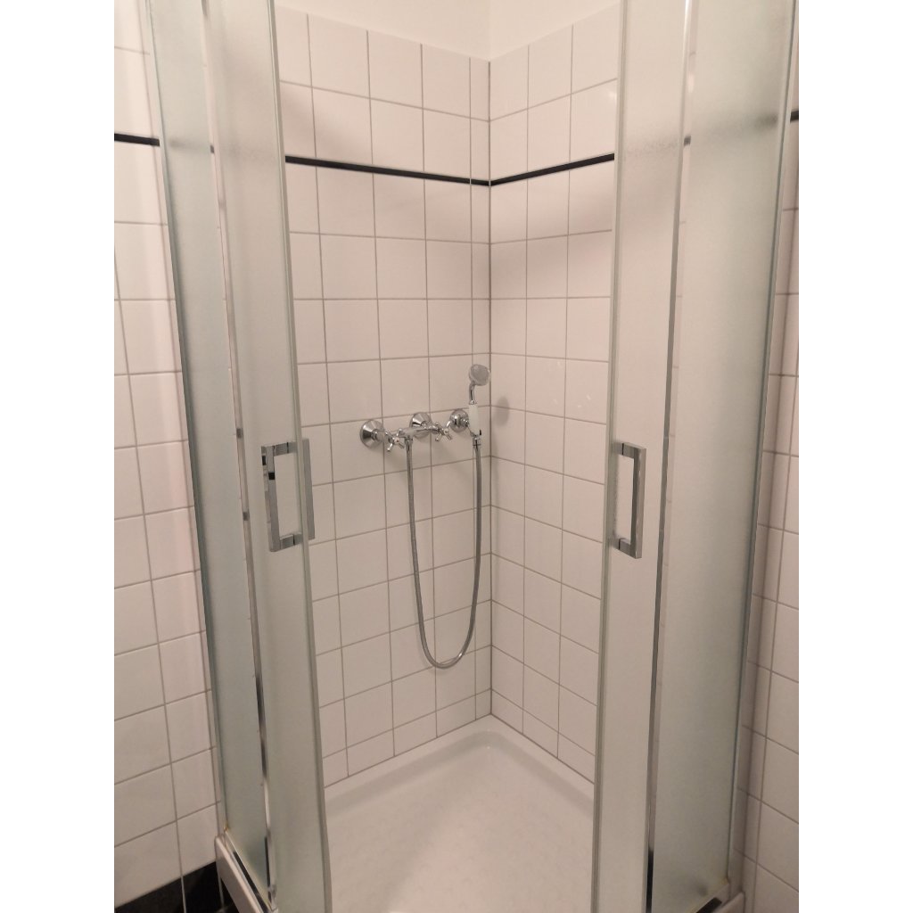 Настенный смеситель для душа с душем и вращающимся держателем.