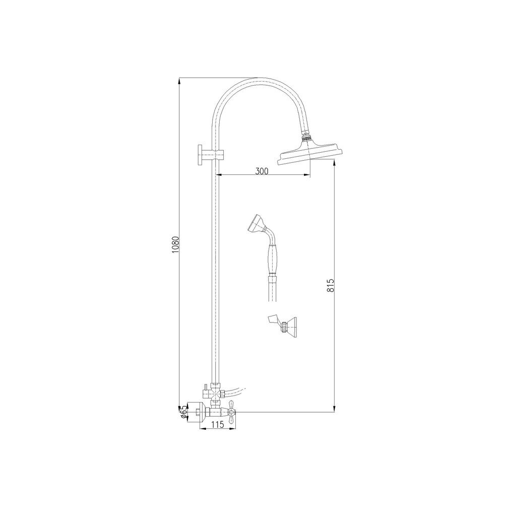 Смеситель для душа MORAVA RETRO с верхним и ручным душем состоит из: