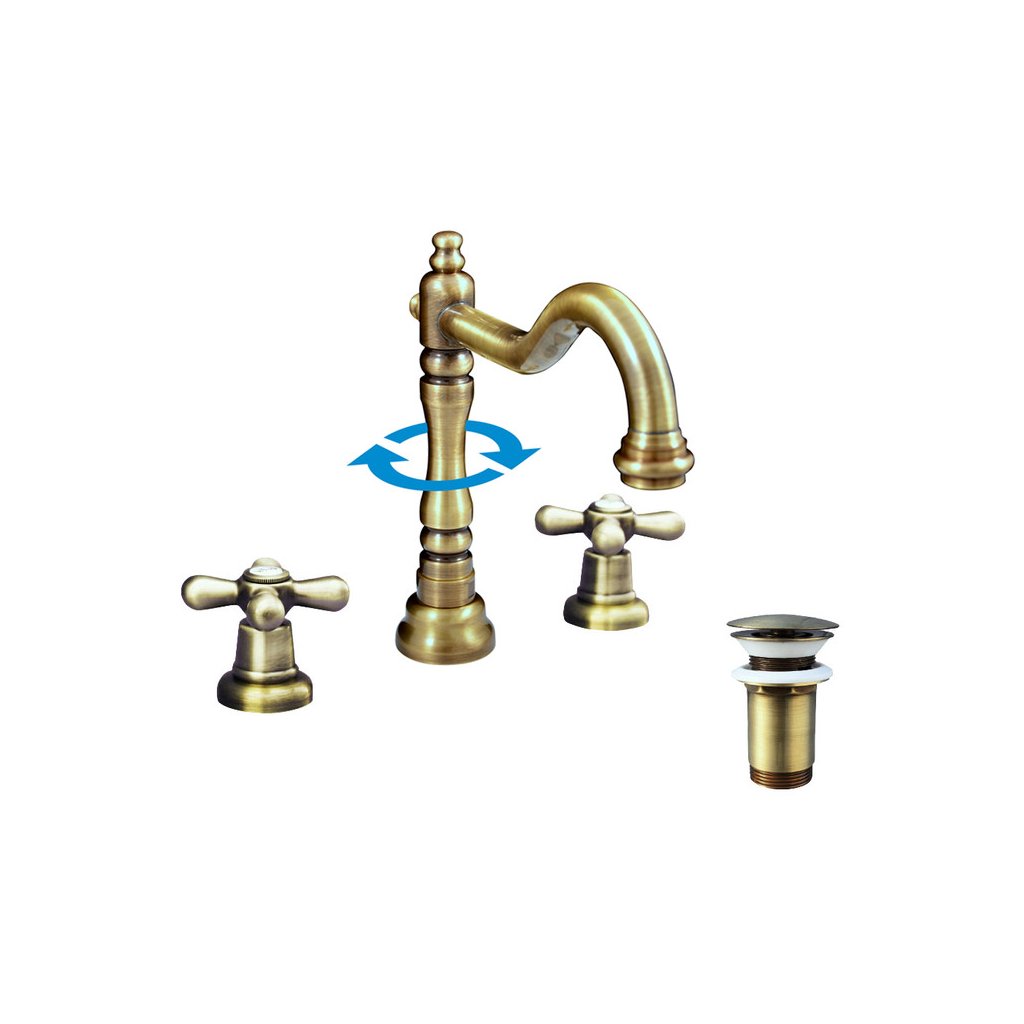 MORAVA RETRO - Basin mixer with drain, Old brass (Bronze) MK132.5SM, RAV Slezák