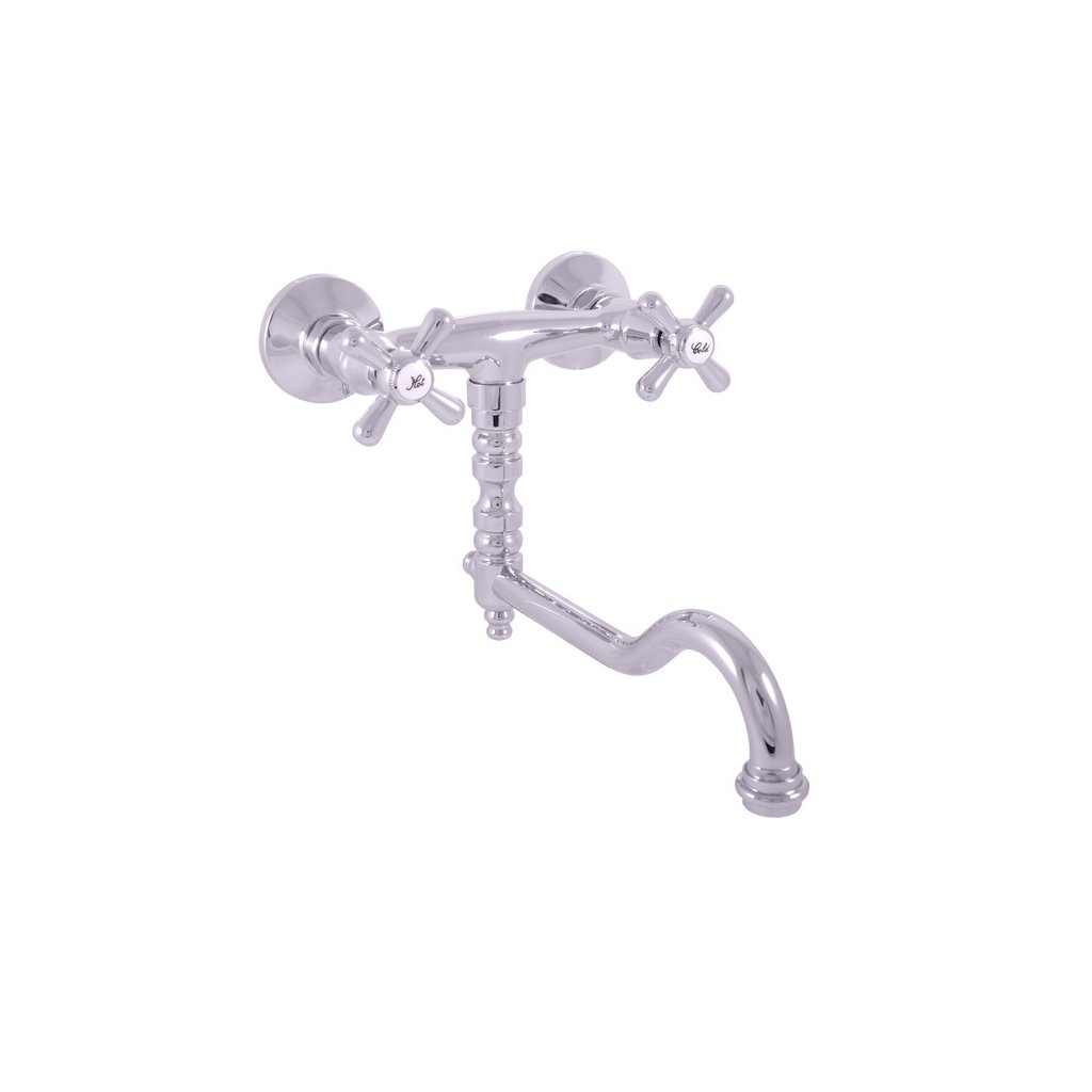 Настенный смеситель для мойки с круглым поворотным рычагом.