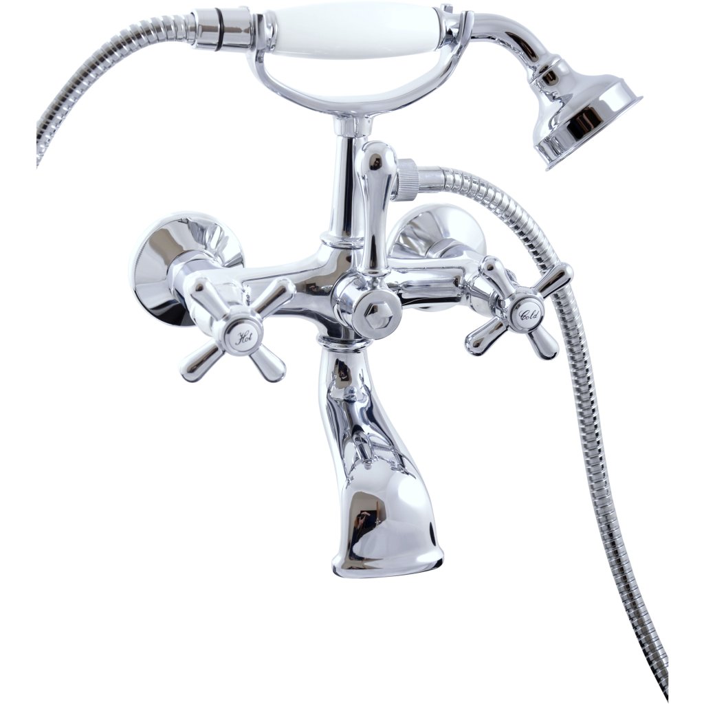 Настенный смеситель для ванны с душевой насадкой и душем.