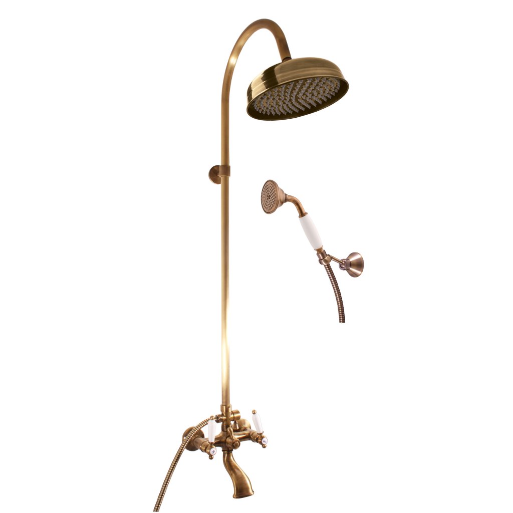 Смеситель для ванны MORAVA OLD BRASS с головкой и ручным душем состоит из: