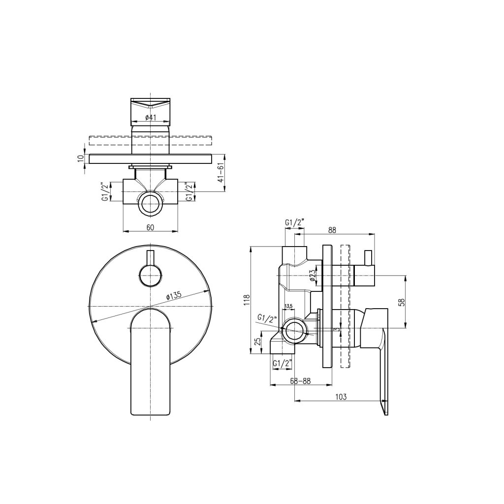 Этот смеситель можно использовать либо в душевой кабине как комбинацию верхнего и ручного душа , либо в ванне как комбинацию, например, перелива и ручного душа или излива и ручного душа .