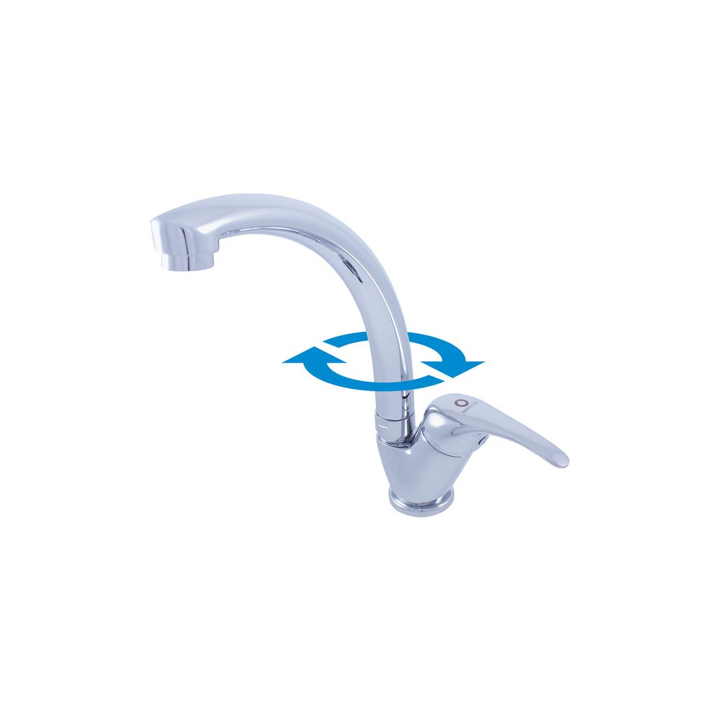 Отдельно стоящий смеситель для мойки с поворотным изливом.