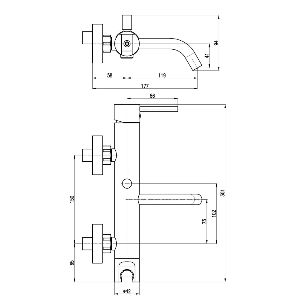 Настенный смеситель для ванны.