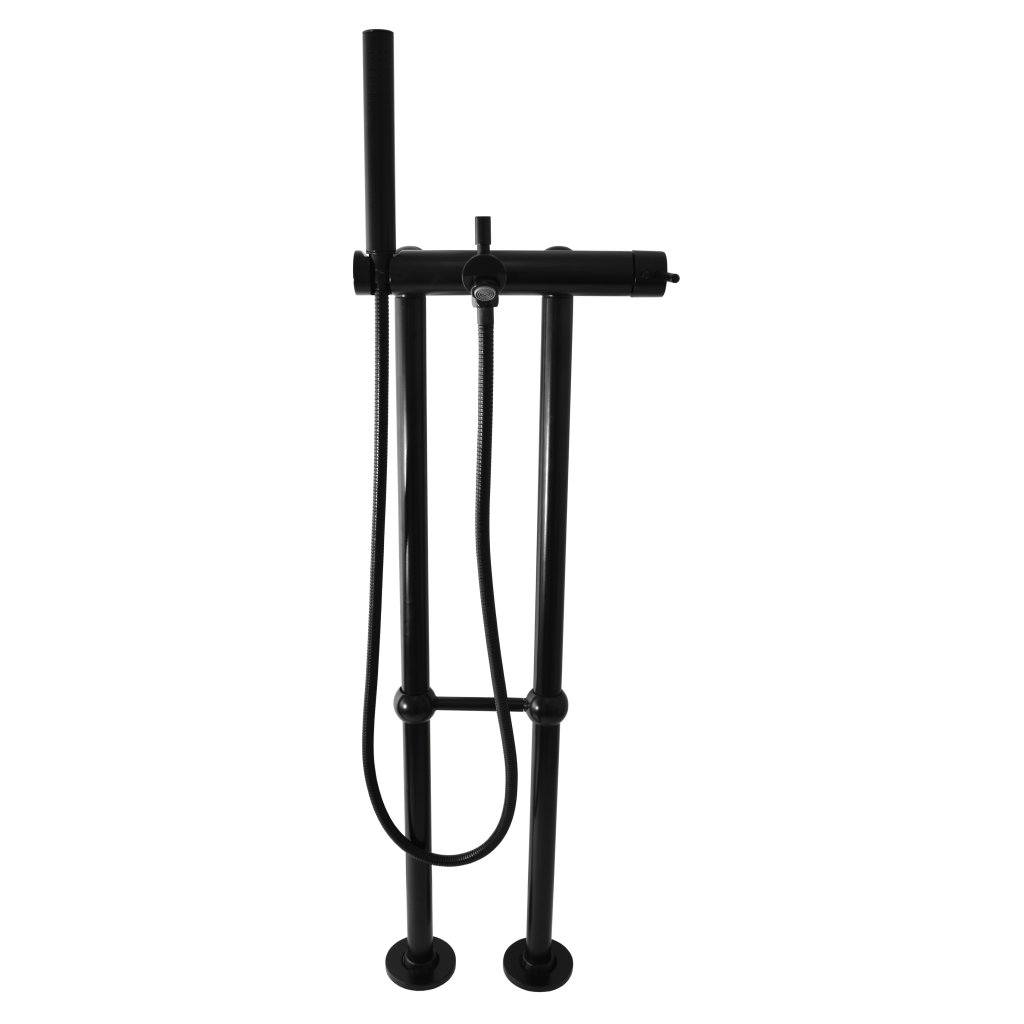Смеситель для ванны, высокий, отдельно стоящий, с душем - матовый черный.