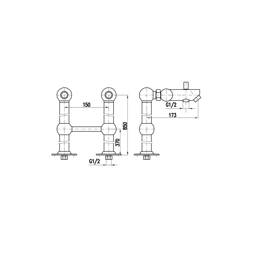 Смеситель выпускается только с шагом 150 мм и предназначен для отдельно стоящих ванн.