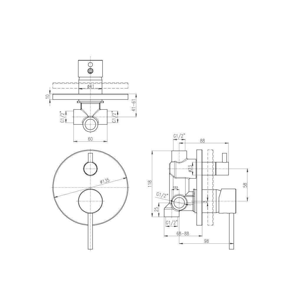 Встроенный смеситель для ванны/душа с переключателем.