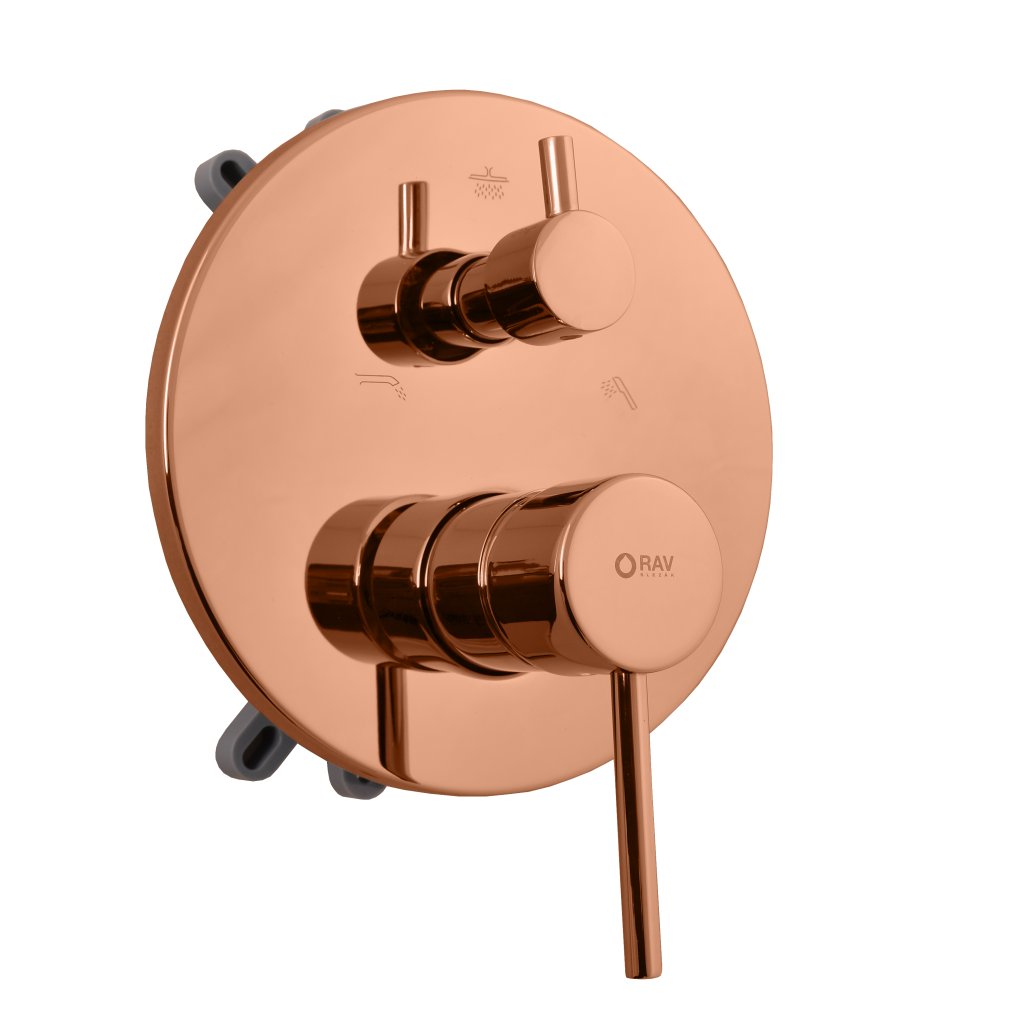SEINA - Смеситель для ванны/душа, трёхходовой, скрытый, с корпусом и коробкой, розовое золото - матовый SE987BOXZRK, RAV Slezák