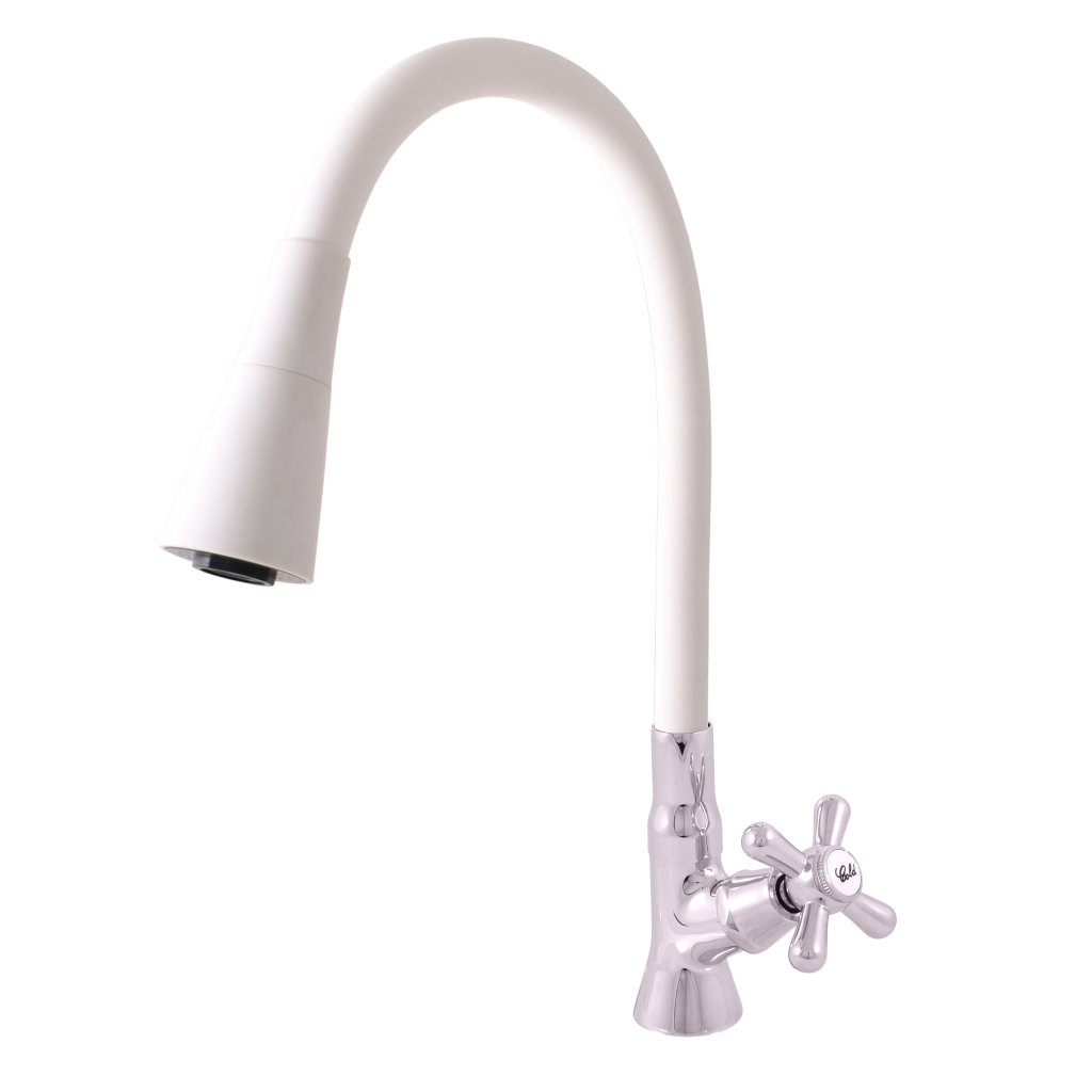 Смеситель для раковины с гибкой ручкой на одну воду без слива, Белый/Хром MK194/13CB, RAV Slezák