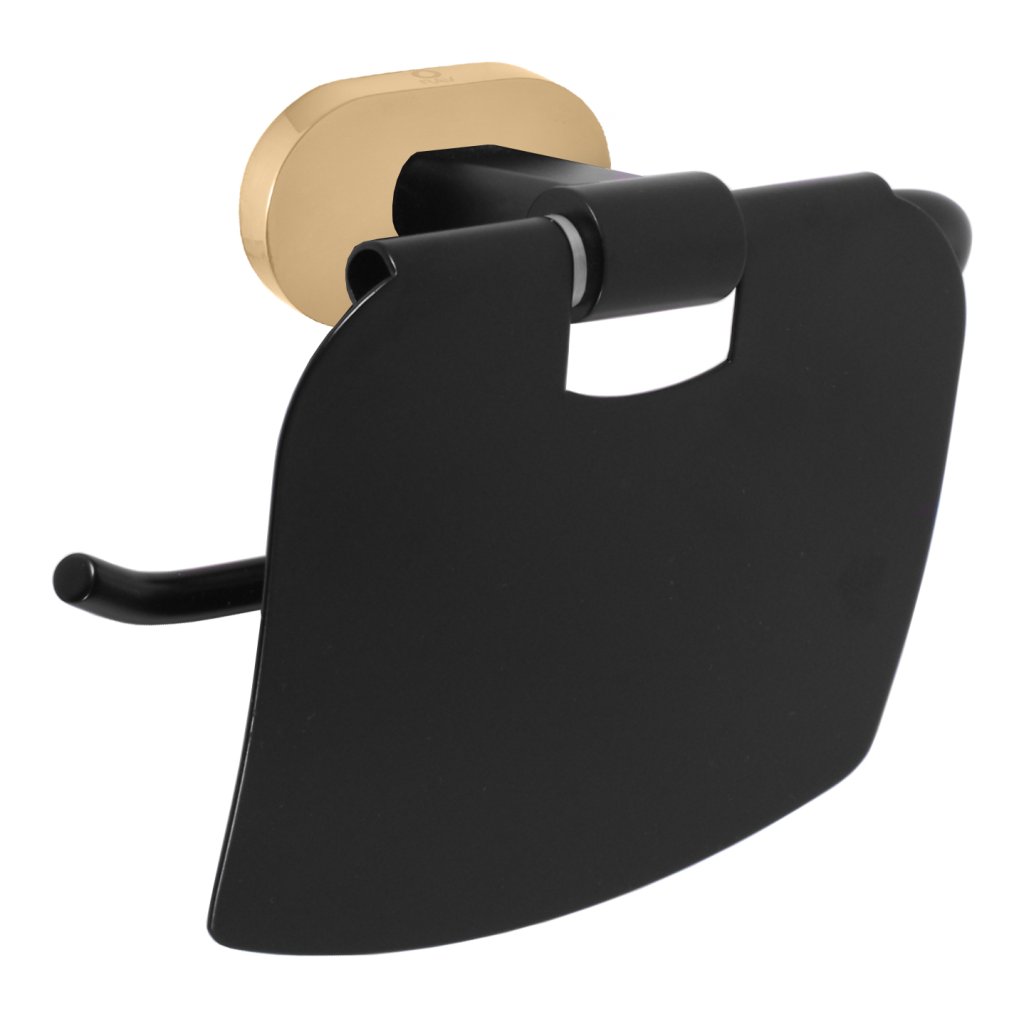 YUKON - Аксессуар для ванной комнаты Держатель туалетной бумаги с крышкой, матово-чёрный/золотой YUA0400CMATZ, RAV Slezák